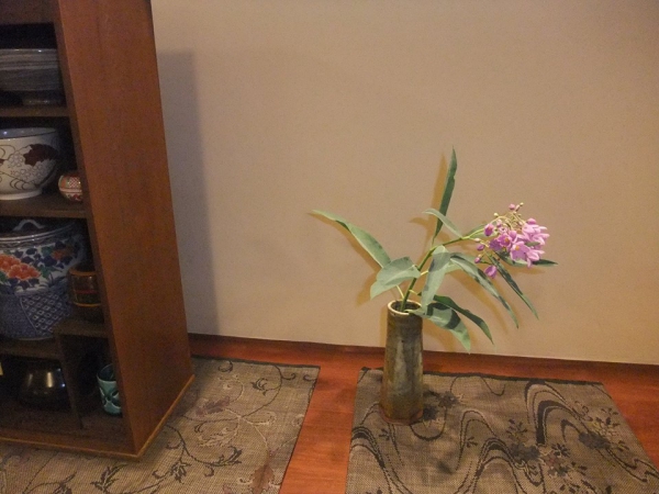 開店祝いにいただいたルリヤナギの花が咲いたよ。