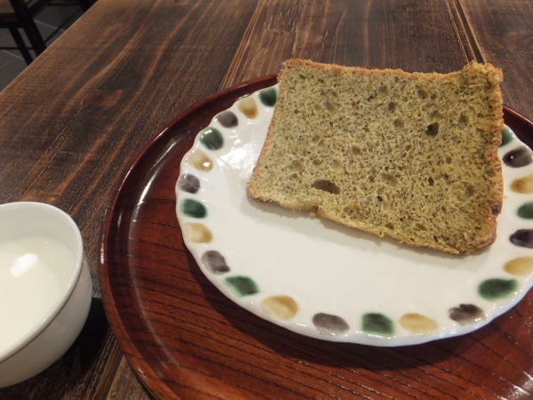 明日にむけて試作した新茶シフォンケーキと牛乳。