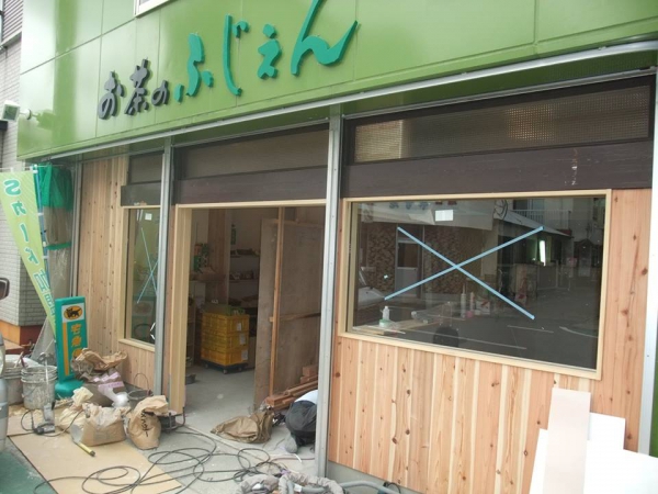 お茶の不二園現在の店舗の感じです。塗装屋さんが養生をしています。 今日から3日間休みます。